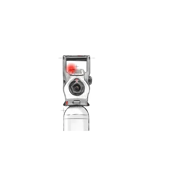 - Permanente Anzeige des Inhalts in Litern und in bar, selbst bei geschlossenem Ventil