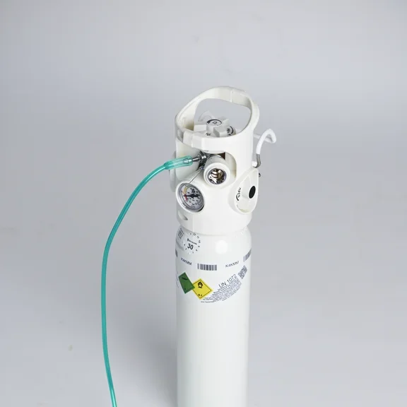 Medizinischer Sauerstoff in Druckgasbehältern mit integriertem Druckminderer.